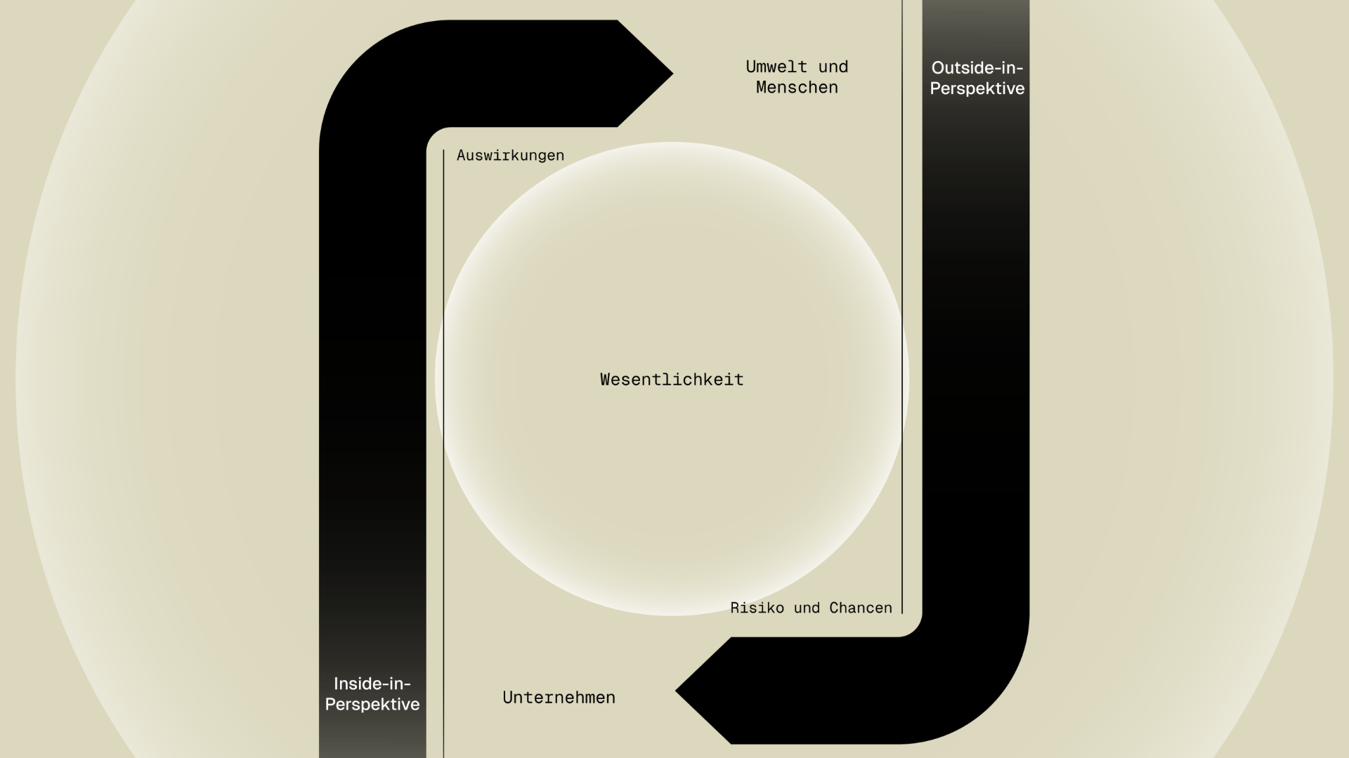 - Finanzielle Wesentlichkeit: Dieser Aspekt betrachtet, wie ESG-Themen die finanzielle Leistung eines Unternehmens beeinflussen. Im Mittelpunkt stehen die Risiken und Chancen, die diese Themen für das Geschäft mit sich bringen, wie etwa regulatorische Änderungen, Reputationsrisiken und Marktentwicklungen.