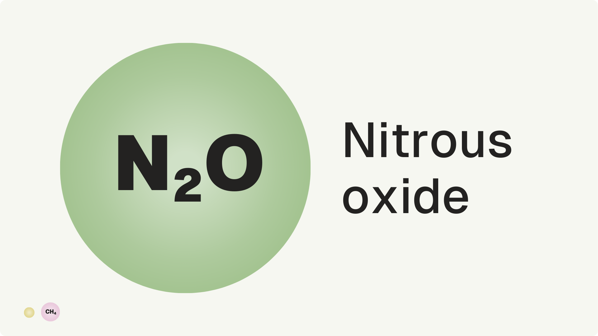 Nitrous oxide, about 4.8% of GHG emissions, is 264 times more potent than CO2 over a 100-year period and survives a little over a century in the atmosphere. It mainly comes from agriculture and livestock as a fertiliser and when waste is put into landfill but is popularly known as laughing gas for its anaesthetic effects.